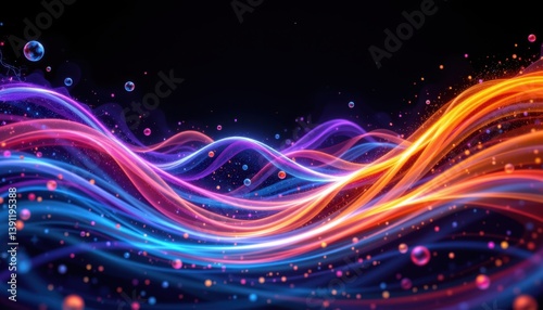 Mystical Energy Waves Design a scene where waves of colorful energy ripple across a dark background, creating a sense of movement and dynamism.