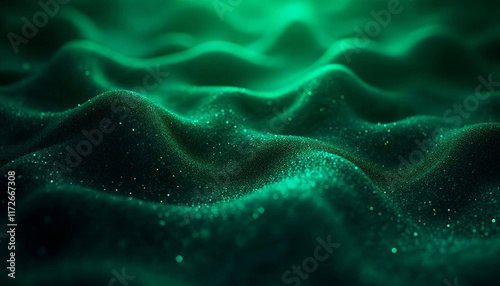 Mystical Green Waves: A Captivating View of Sparkling Textures Under Soft Light
