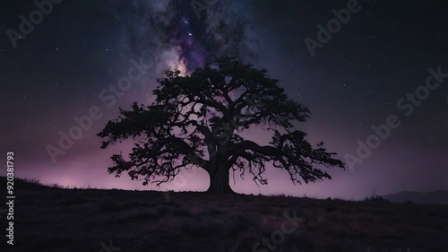 Mystical landscape of a forest with a unique lonely tree, dark themed fantasy illustration