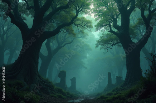 Mystical Moonlit Forest with Ancient Twisted Trees