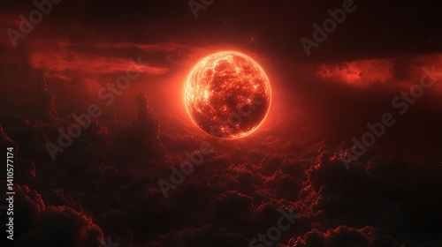 Mystical red moon with clouds drifting across the night sky high resolution picture