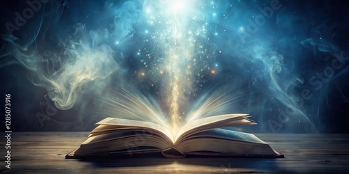 Mystical tome radiating ethereal light on somber backdrop, paranormal, enchanted, paranormal, enchanted, mystic, glowing