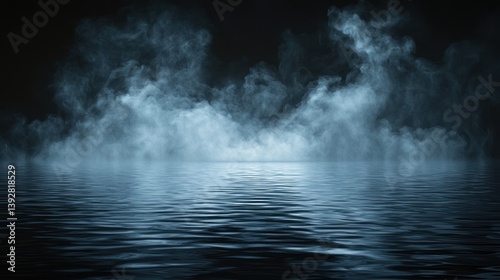 Mystical Water Surface Reflecting Ethereal Fog Against a Dark Backdrop