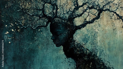 Mystical Woman and Tree: A Dark, Abstract Portrait