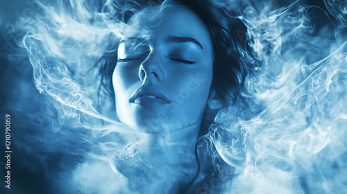Mystical woman surrounded by flowing abstract waves of energy and light