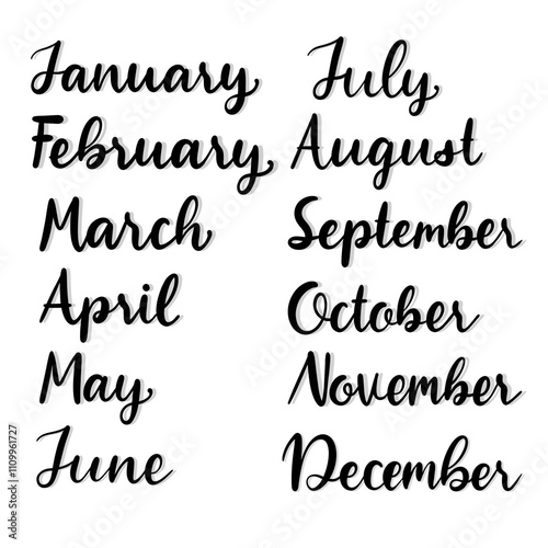 names of month hand drawn lettering