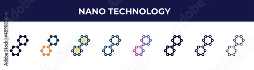 nano technology icon in 8 styles. line, filled, glyph, thin outline, colorful, stroke and gradient styles, nano technology vector sign. symbol, logo illustration. different style icons set.