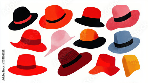 National HAT Day concept. Stylish collection of minimalist hat designs in various colors and shapes