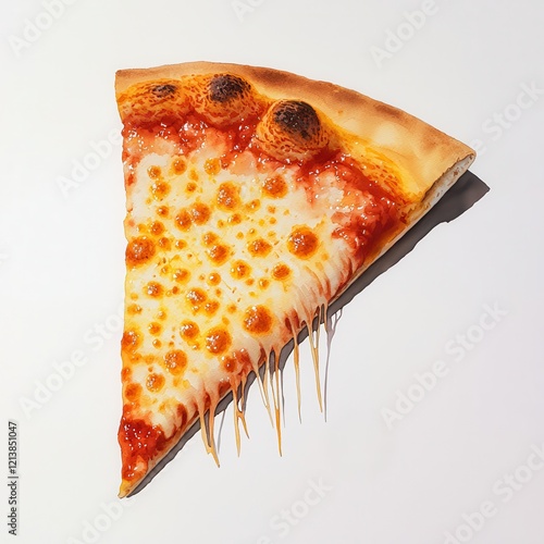 National Pizza. Delicious cheese pizza slice with melting cheese and crispy crust on white background.
