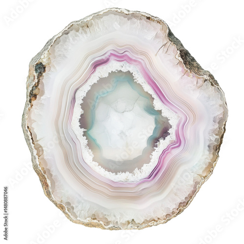Natural Agate Slice with Colorful Bands and Intricate Patterns for Home Decor and Jewelry Making on transparent background