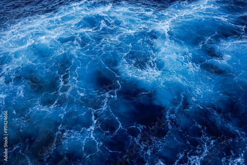 Natural blue waters with white caps. View from a ship. Ocean water.