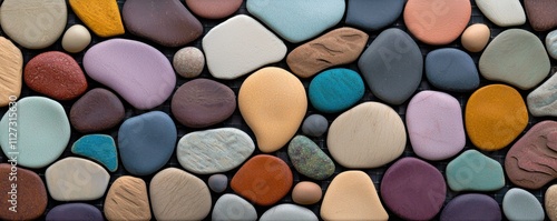 Natural colorful pebbles displayed in a unique arrangement close-up nature calm environment abstract concept