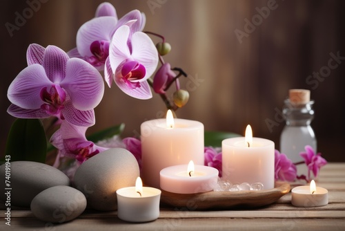 Natural Oasis. Serene Relaxation Space with Orchids and Candlelight.