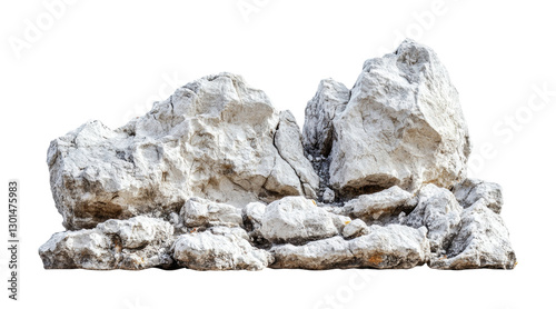 Natural rocky formation with unique textures and shapes suitable for outdoor landscaping and design projects during any season, cut out