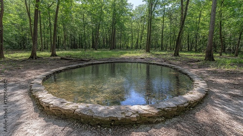 Natural stone spring in forest clearing