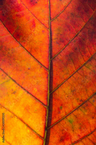 Nature Abstract: Cells and Veins of a Colorful Autumn Leaf
