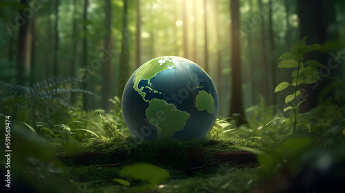 Nature Conservation and Global Sustainability: The Green Globe in the Forest. Generative AI