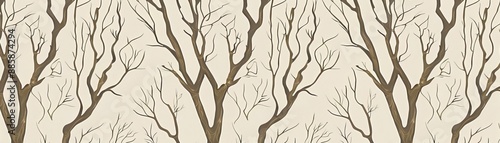 Natureinspired pattern, seamless, earthy tones, delicate tree branches, digital rendering, elegant and serene design, forest motif, intricate details