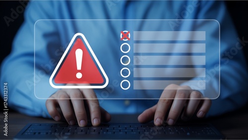 Navigating cybersecurity threats with vigilance, red alert on digital checklist, protecting data from online risks, ensuring compliance and secure business practices, safeguard information