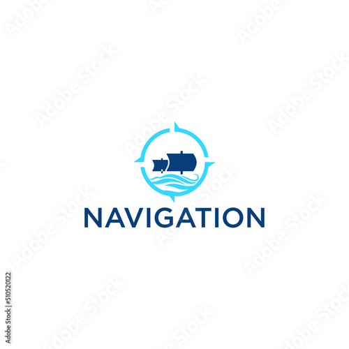 Navigation logo with sailboat and compass design vector