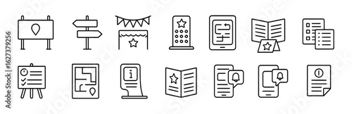 Navigation, map outline icon set. journey, location guide symbols in linear style