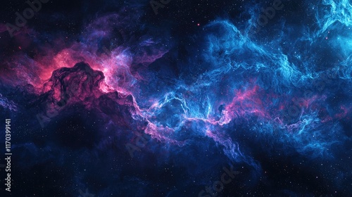 Navy Blue DNA double helix with dark tumultuous nebula background