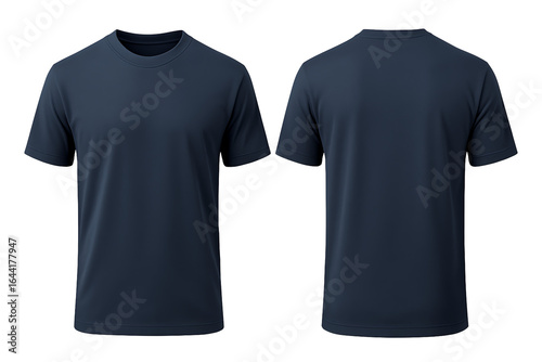 Navy blue short sleeve t-shirt front and back view mockup isolated on transparent background