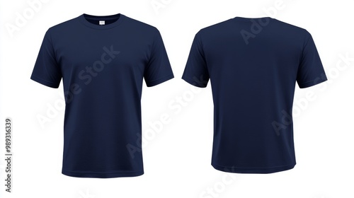 navy blue T-shirt template with nothing neat, mockup for design and print. T-shirtT-shirt front and back view isolated on white background