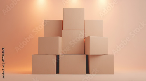 Neatly arranged cardboard boxes create minimalist display in soft lighting