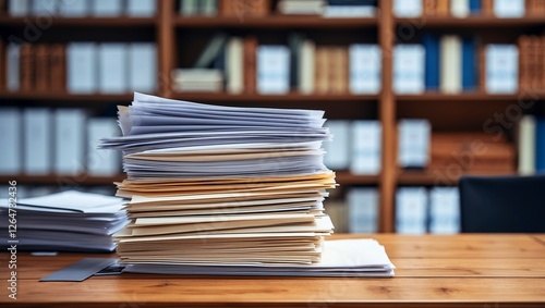 Neatly stacked documents on a wooden table