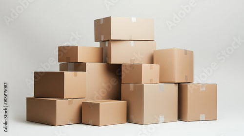 Neatly Stacked Pile of Cardboard Boxes on a Plain White Background
