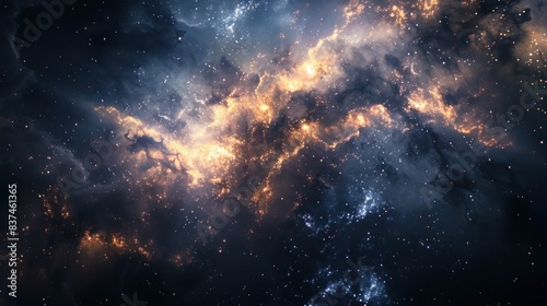 Nebulae far away illuminate the dark void, highlighting the beauty and mystery of space.