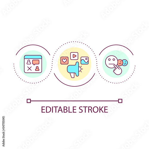 Negative impact of social media on business loop concept icon. Connect with new customers. Bad reviews abstract idea thin line illustration. Isolated outline drawing. Editable stroke. Arial font used