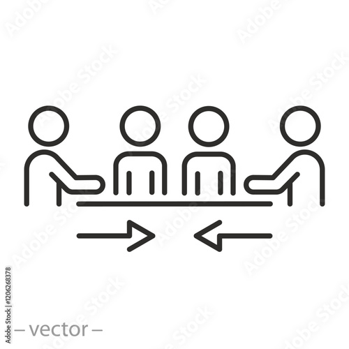 negotiating table icon, conference, people gather at office desk, peace summit, thin line symbol on white background - editable stroke vector illustration