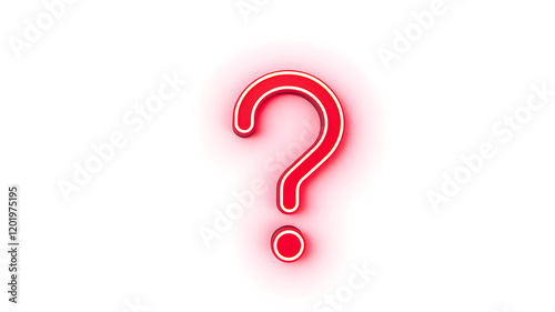 Neon 3D image of 3D red neon question mark, solid white background. Generative AI
