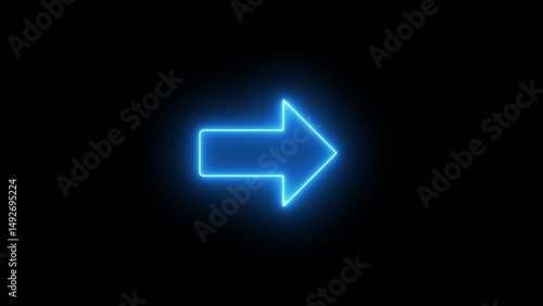 neon arrow icon. right arrow identify. Glowing direction arrow. Blue color neon light arrow pointing right. Direction sign. Bright Swipe right arrow. right arrow neon glow icon black background