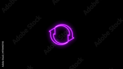 Neon arrow loading icon. Progress Circle glow Design Elements. Download progress on black background.