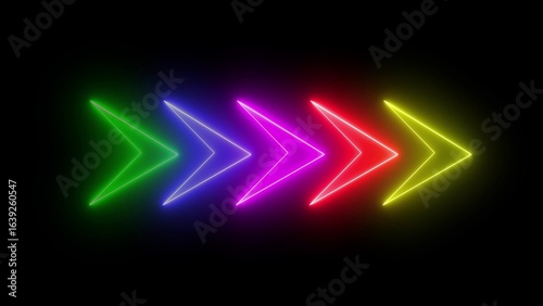 Neon Arrows in Green Blue Purple Red and Yellow Pointing Right on Black Background