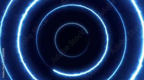Neon bakcground flying through edless glowing rotating neon circles creating a tunnel, blue red pink violet spectrum, fluorescent 3d rendering infinity light, modern colorful lighting, 4k