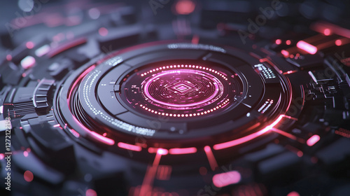 Neon biometric scanner, digital identity, high-tech data protection.