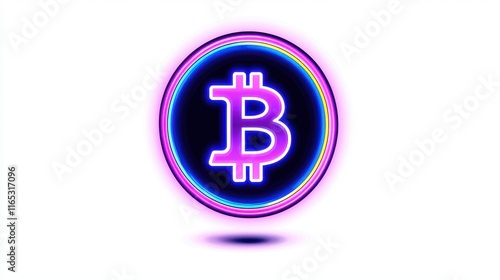 Neon Bitcoin Symbol with Colorful Glowing Effect on Dark Background Representing Cryptocurrency Innovation and Digital Finance Concepts for Stock Photography Use