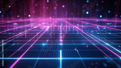 neon blue and purple lines, giving the appearance of a virtual reality landscape, ideal for gaming or futuristic themes