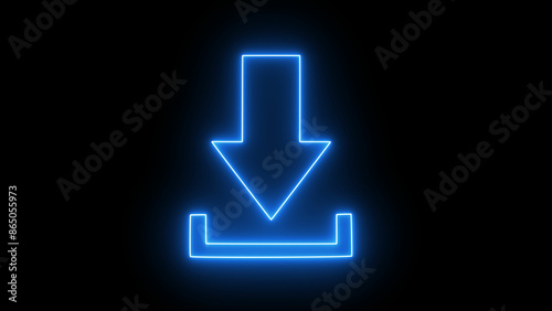 Neon Blue arrow symbol icon. Black Background with arrow direction down. Directional sign. Flashing neon icon to the download arrow. neon arrow sign.