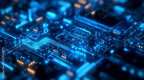 Neon Blue Glowing Circuit Board Depicting Cutting Edge Digital Innovations : Generative AI