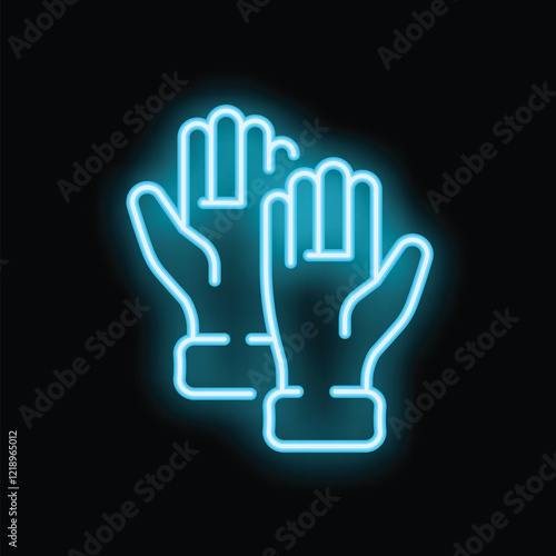 Neon blue glowing icon of two hands giving high five, isolated vector illustration on black background