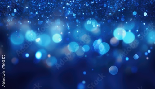 Neon Blue Light Abstract Sparkles Bokeh Background.