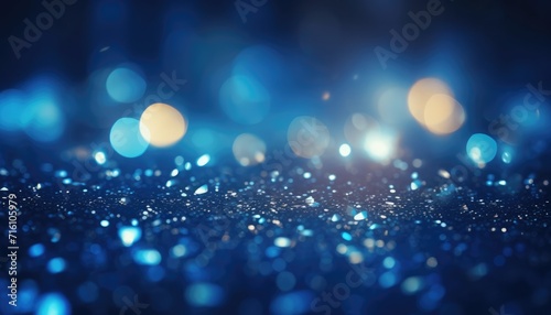 Neon Blue Light Abstract Sparkles Bokeh Background.