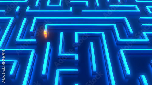 Neon Blue Maze with Glowing Pathway and Bright Yellow Element