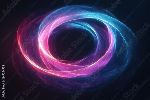 Neon Blue Pink Circular Wave Pattern Digital Art on Black Background Futuristic Technology Concept