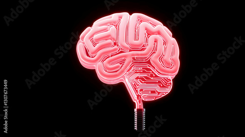 Neon Brain Illustration with Circuit Design and Abstract Background